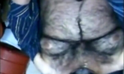 riesiger haariger bär und haariger körper dehnen engen hintern