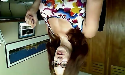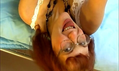 rothaarige milf in gläsern atmet drinnen einen kleinen schwanz ein