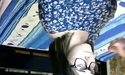 verführerische asian teenie in gläsern bekommt rot-hot funbag bohren