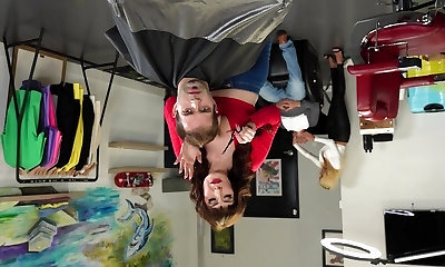 zierlicher brünetter teenager verführte ihren nerdigen stiefbruder zur gegenseitigen masturbation