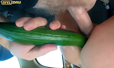 doppelte aubergine- sie fickt sich mit auberginen