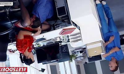 kurvige vollbusige pawg lady lyne verführt ihre kollegin, sie seinen schwanz direkt bei der arbeit genießen zu lassen