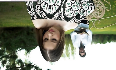 softcore-cowgirl würgt nach luft, während sie einem rauen hunde-bumsen im freien trotzt