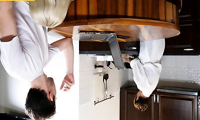frau putzt das haus, während stiefsohn stiefschwester fickt