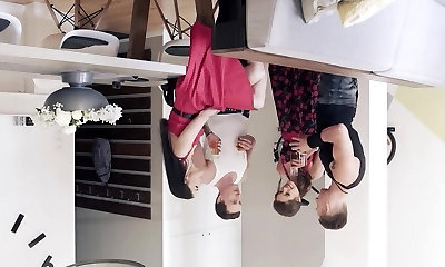 schlampiger vierer mit meiner frau, hausmädchen und meinem kumpel im sofa