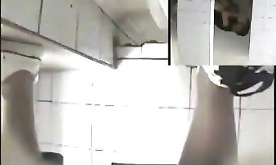 schlanke brasilianische hottie genießt mit ihrer kollegin auf der öffentlichen toilette einen aufregenden quickie mit beiden löchern