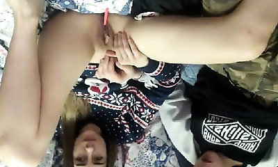 Pale blonde horny lesbians poking threesome babes