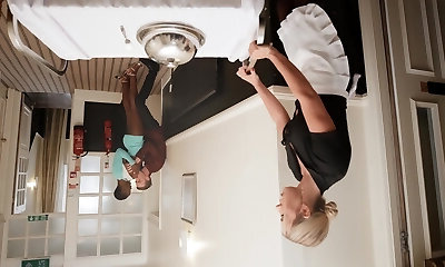 Hardcore FFM 3some with dark-hued Zaawaadi and maid Miss Alice Wild