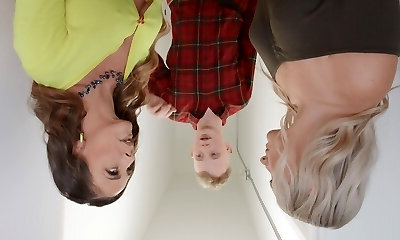 Goody goody Adria Rae and her best friend enjoy eating sperm after threesome fucky-fucky with stepbrother