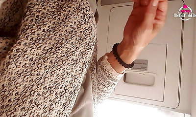 Cougar gets overexcited on airplane flight and fucks herself in the toilet