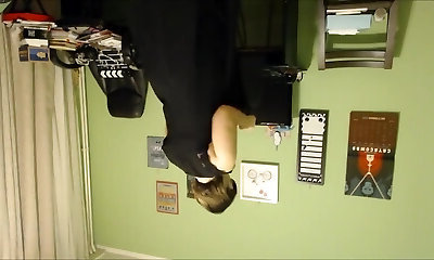 Pallid curly whore sniggers as she peeing at home on her webcam