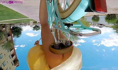Pantless woman Avi Love is riding her bicycle before a steamy sex with stranger