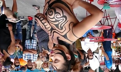 Big funbags girl public body painting