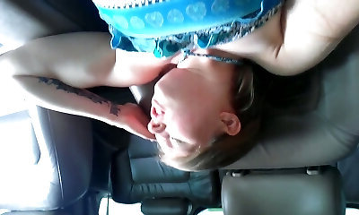 Naughty lesbian Sonia gives tongue job to her sapphic girlfriend in the car