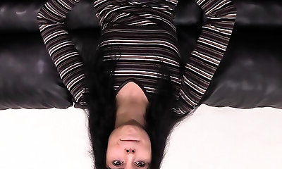 Anal Casting On Black Leather Couch