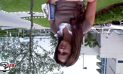One lucky man spunk-pumps a students with a rope-on on the campus