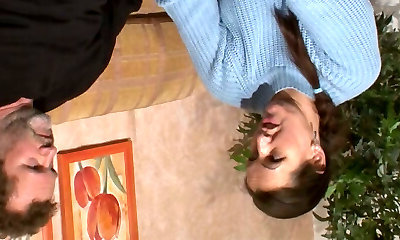 Perverted married couple fucks pretty light-haired teen with pigtails
