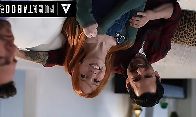 Playful redhead stepsister properly DPed by two horny bulls in noisy trio