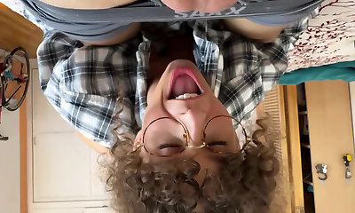 Obese nerdy PAWG girlfriend ardently tops my cock in cowgirl pose