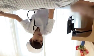 Gentle lovemaking on the sofa with an lovely Japanese nurse