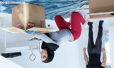 Young stepsister Elsa Jean lifts her micro-skirt up and gets her vag slammed