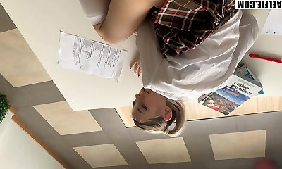 Biology teacher spoke in detail about sex education to a super-cute petite light-haired with pigtails